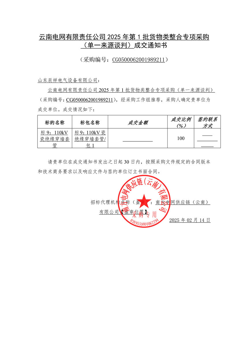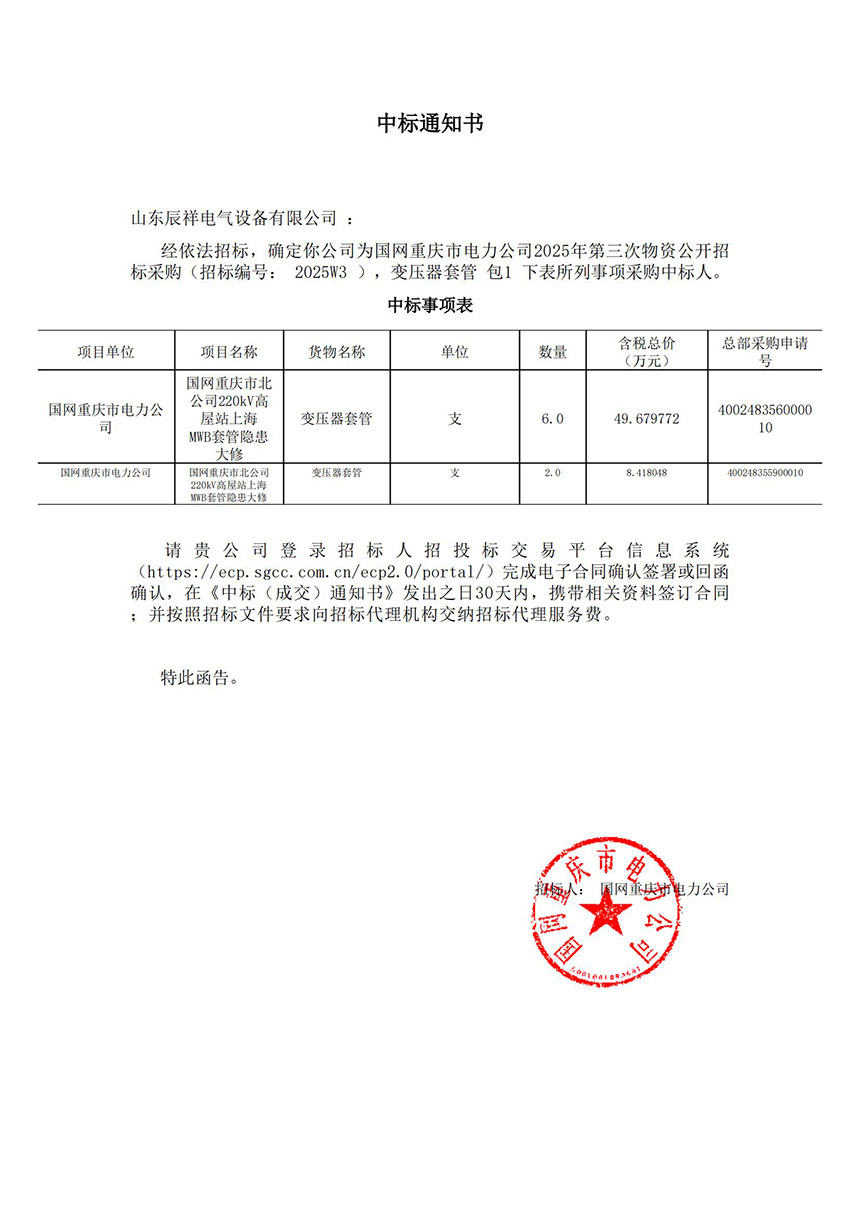 2025.02.14 110kV瓷絕緣穿墻套管中標通知書